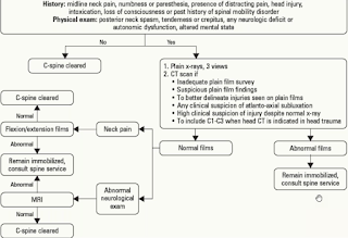 C-spine X-ray (95% of radiologically visible abnormalities are found on this